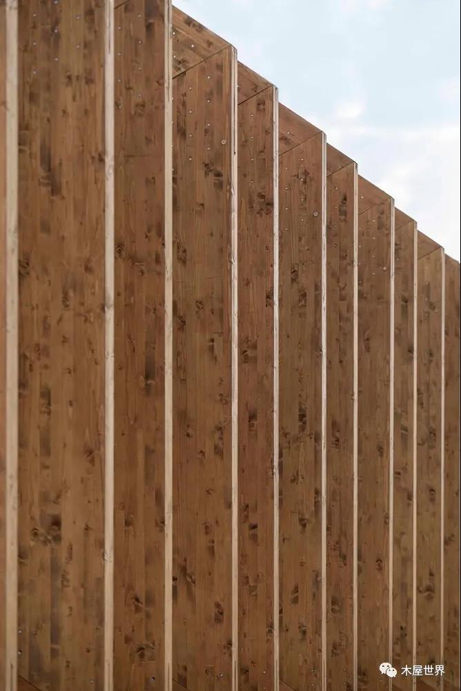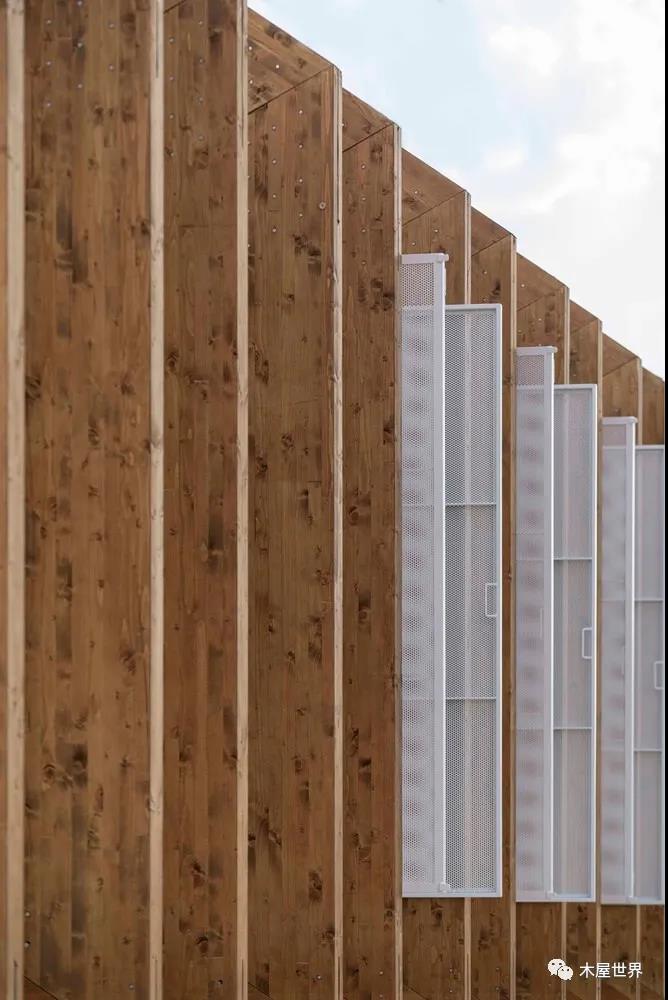 這是一個干燥的工業(yè)化木結(jié)構(gòu),能夠保證質(zhì)量,對于環(huán)境的影響低,但是有著一定的效率、經(jīng)濟效益,以及結(jié)構(gòu)設(shè)計精準(zhǔn)度。與此同時,這種體系便于運輸、調(diào)試、裝卸,為了滿足這些需求,結(jié)構(gòu)、天花板、立面、技術(shù)樓層的綜合網(wǎng)絡(luò)和空調(diào)之間的協(xié)調(diào)必不可少。在建筑內(nèi)部,項目的最后一層覆蓋了與展館中建筑部分相同的完成面。