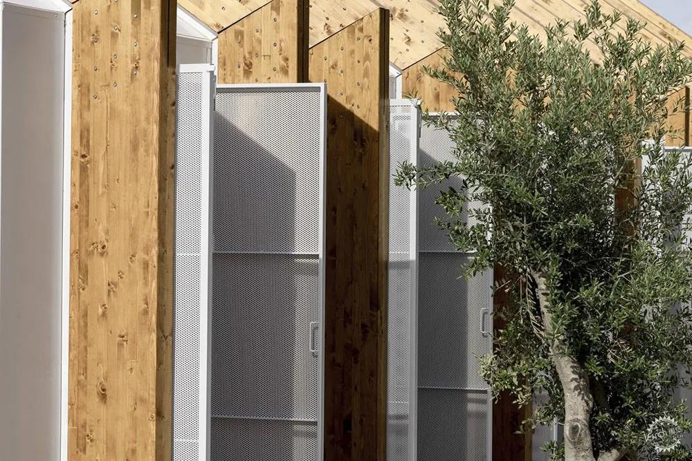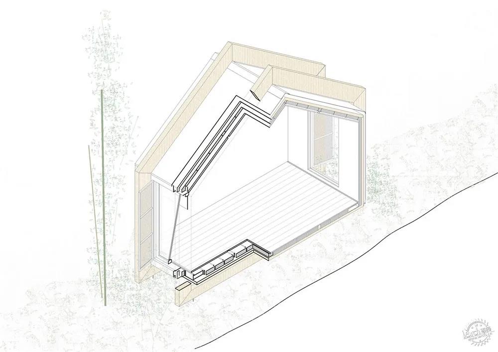 代表性與象征性形象。在建筑的外部,建筑師通過技術(shù)和形式來表達(dá)整體的代表性與象征性特征,建筑師希望項目簡約、干凈、優(yōu)雅,并且通過緊湊的山墻體量構(gòu)成了建筑的原型。項目較為抽象,白色的體量強調(diào)了木制結(jié)構(gòu)的特征,展館的概念也很好地表達(dá)了其空間本質(zhì),即建筑。