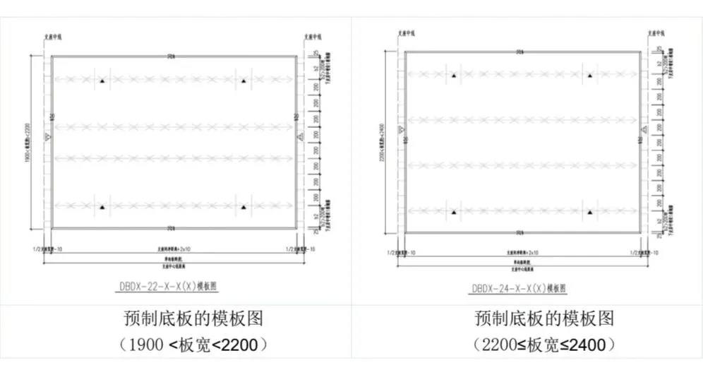 不同寬度預(yù)制底板的模板圖詳見下圖。